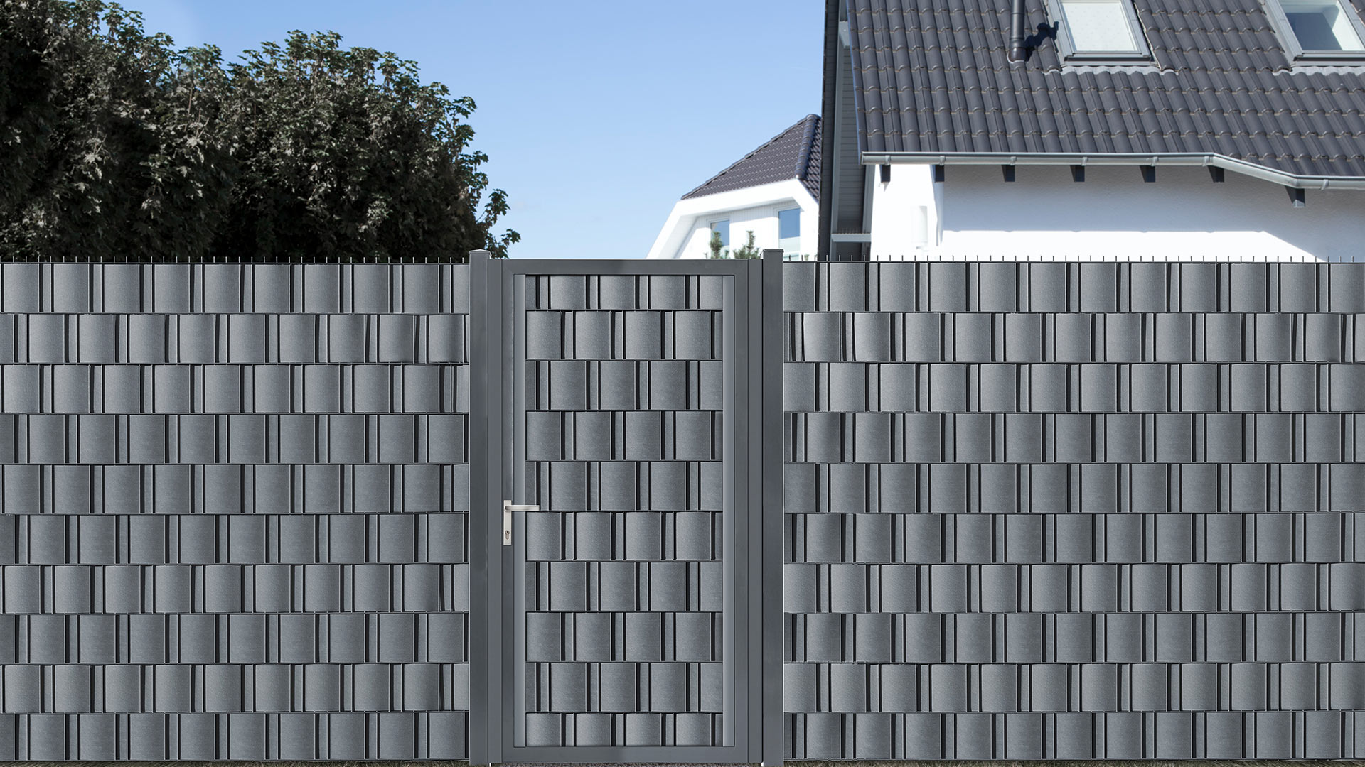 Unsere Sichtschutzleisten für die Fixierung von Sichtschutzstreifen sind hervorragend dafür geeignet, einen bündigen Abschluss zu bekommen. Die Sichtschutzleiste ist in drei Farben erhältlich: Moosgrün, Anthrazit und Weiß an.
