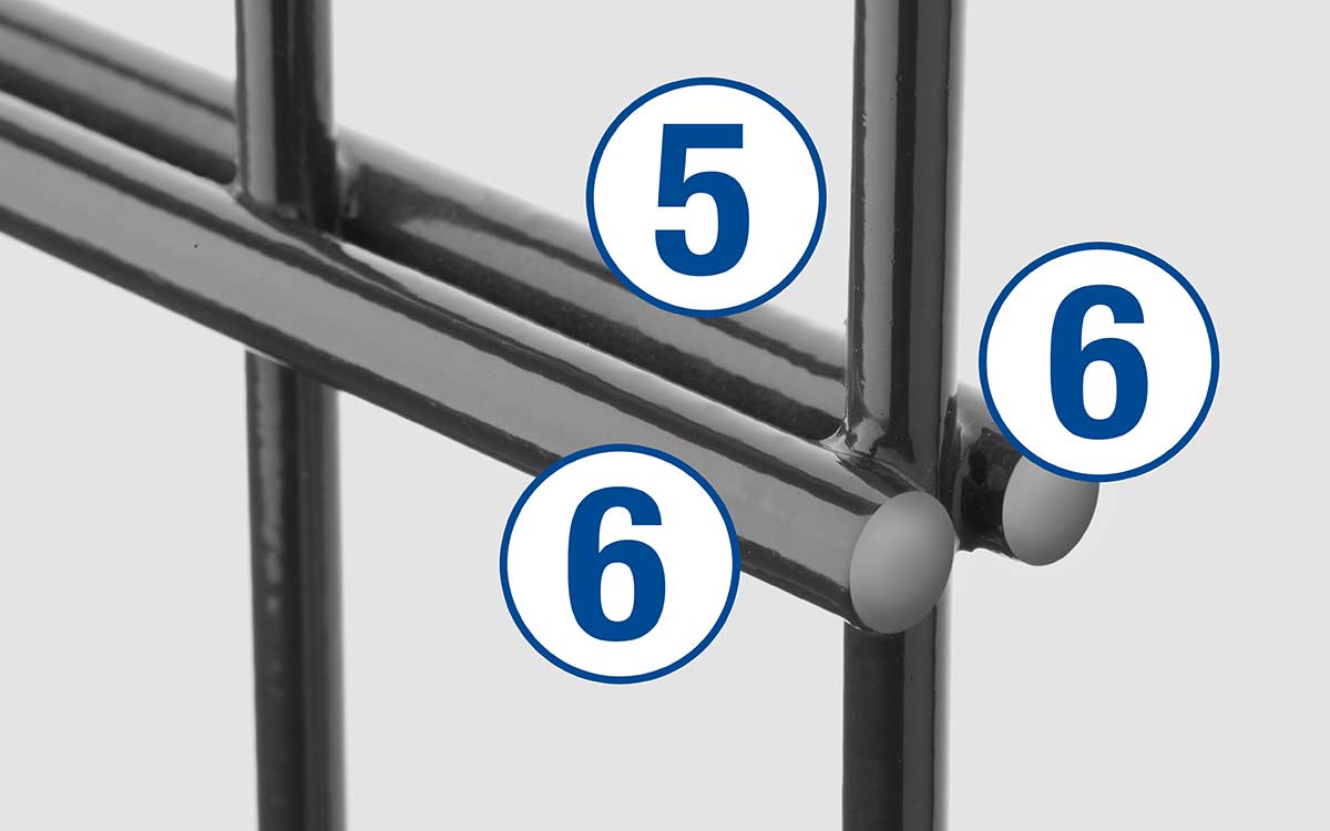 Wir empfehlen bei Zaunhöhen unter 1830 mm die Überstände aus Sicherheitsgründen nach unten zu montieren. Ab einer Zaunhöhe von 1830 mm werden die Gitter in der Regel nach oben montiert.