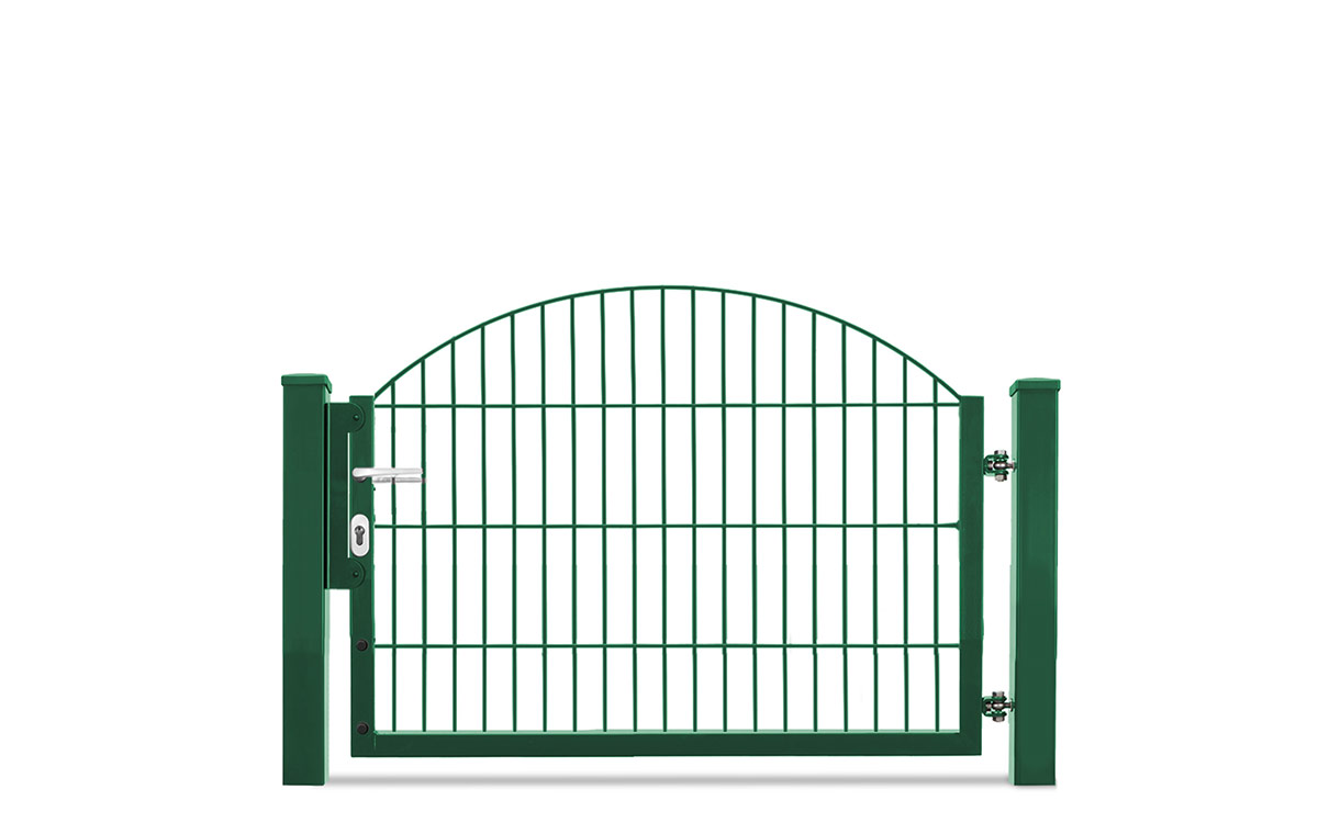 Choose your new decorative fence gate either hot-dip galvanized, moss green powder-coated, or dark grey powder-coated. Custom colours and effect coatings are available upon request.