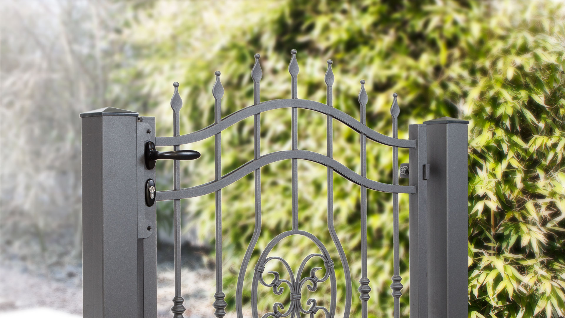 Diese hochwertigen, Stahlrahmen-Tore sind mit den entsprechen den Schmuckelementen unserer Schmiedezaunserie ausgestattet.