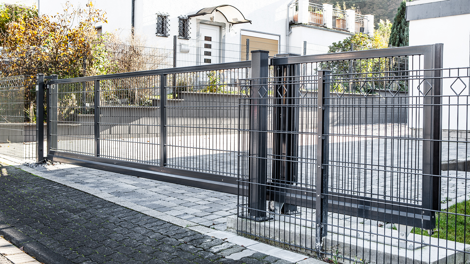Die leichten Schiebetore (freitragend) des Typs V-Star F60 sind sowohl für den privaten als auch den gewerblichen Bereich geeignet. Sie sind in lichten Weiten von 3000 mm bis 4500 mm und in Höhen von 1000 mm bis 2000 mm erhältlich. Passend zu Ihrem Zaunsystem sind sämtliche Senkrechtstab-, Doppelstab-, Schmuck- und Schmiedezaunfüllungen möglich.