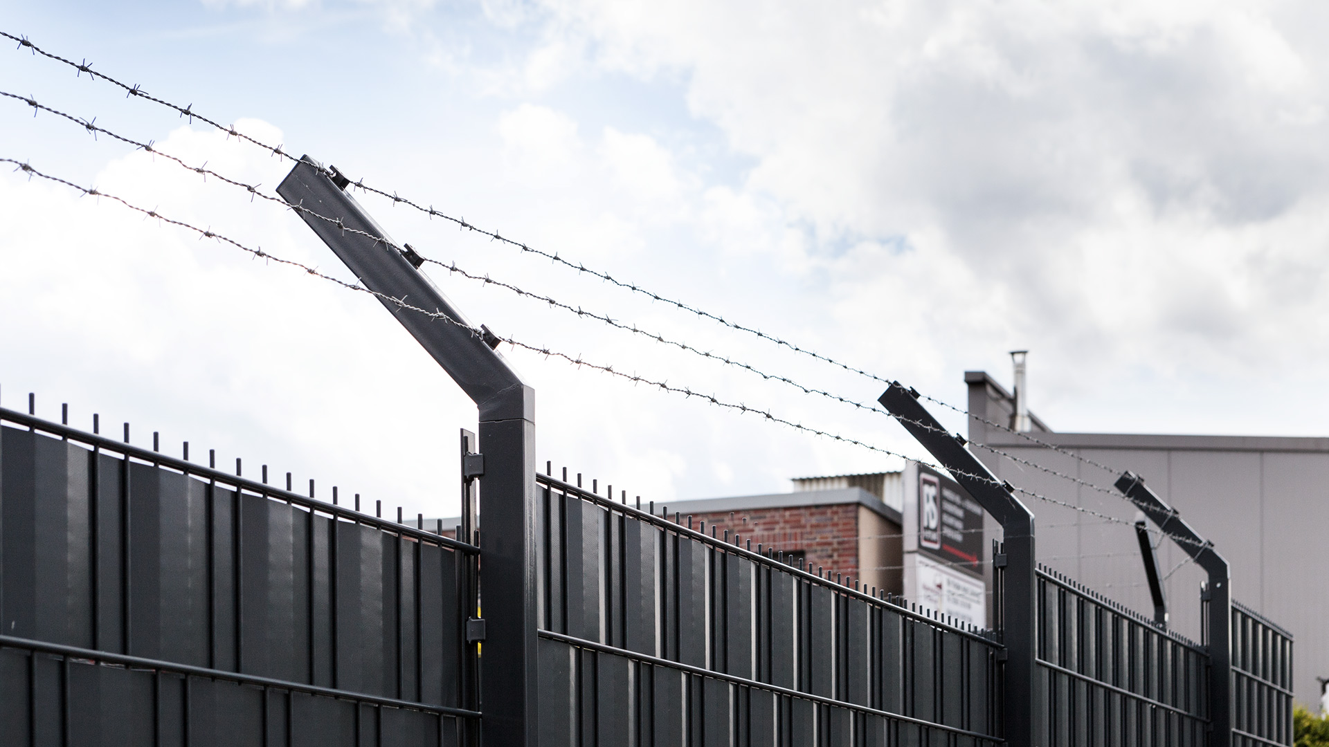- Sicherheitszäune mit Stacheldraht oder Sichtschutz