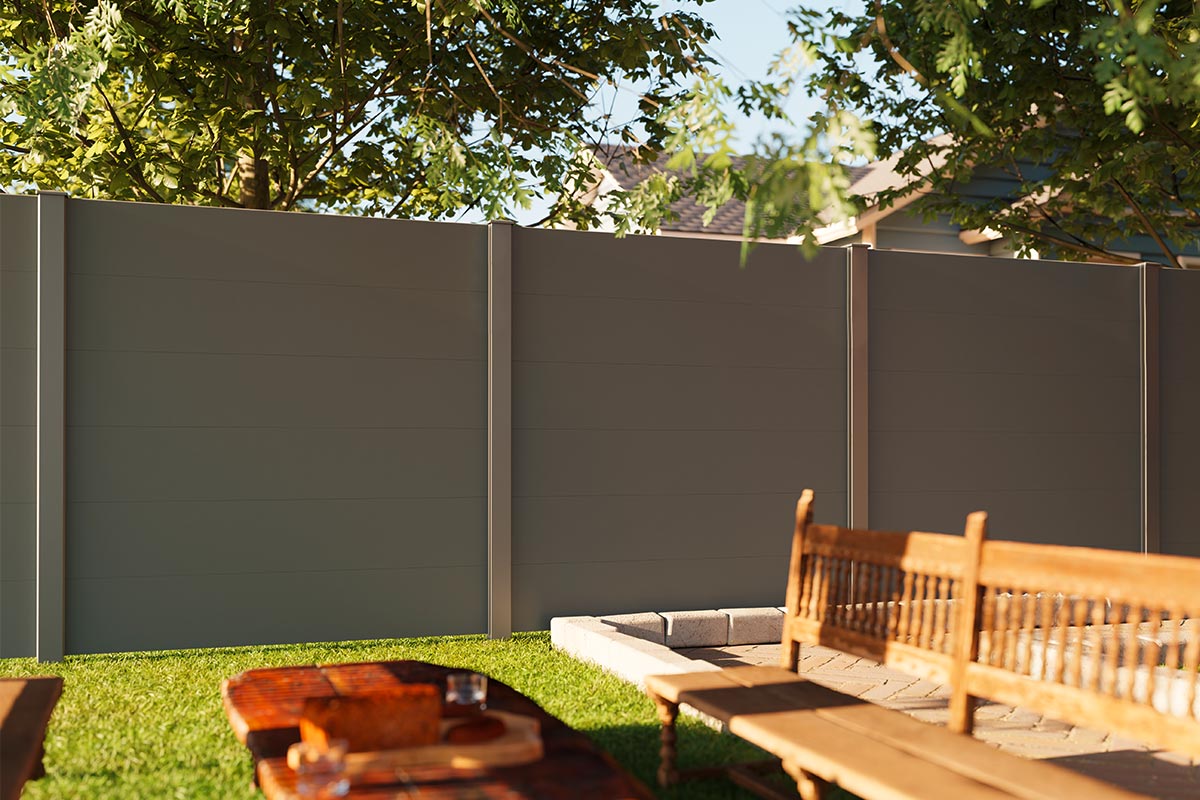 - Pflanzen, Beleuchtung oder Sichtschutzkomponenten (z. B. Sichtschutzstreifen) ergänzen den Zaun
