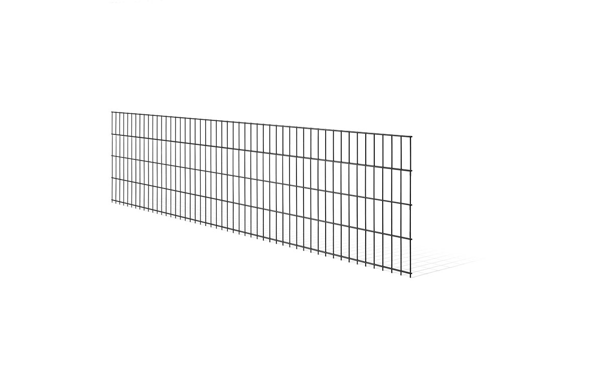 The double rod fence MAX is primarily used for individual fencing of industrial properties. The vertical wire thickness is about 6 mm, and the horizontal wire thickness is about 2 x 8 mm. The double rod fence has a length of 2510 mm. The MAX model is hot-dip galvanized in a full bath. The double rod fence is stocked in the RAL colors 6005 (moss green) and 7016 (anthracite gray). Custom colors are available upon request. Safety notice: We recommend mounting the projections downwards for fence heights below 1830 mm for safety reasons. Above a fence height of 1830 mm, the grids are usually mounted upwards.